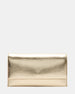 Expertly crafted and versatile. the JULIANA BAG GOLD is a wardrobe staple. The clutch design offers convenience and style. with a magnetic snap closure and removable crossbody chain strap. Its interior back wall slip pocket holds credit cards and valuables. making it perfect for any occasion.