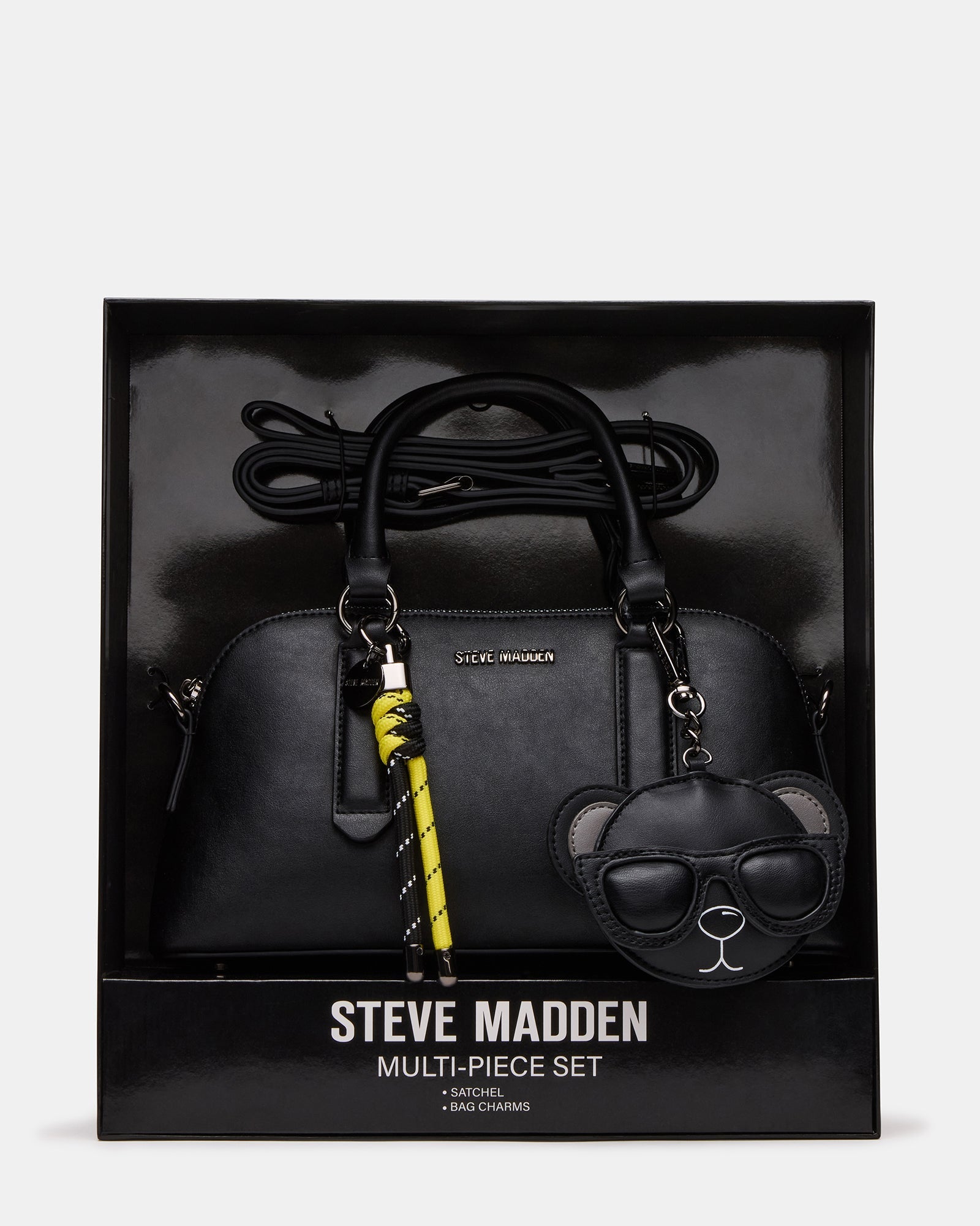 Elevate your holiday gifting with the THORNE CHARM BOX GIFT SET BLACK. This stylish accessory handbag set features attachable bag charms to personalize your look and a convenient attachable crossbody strap for versatile wear. Crafted to combine function and fashion. it's an expert choice for those seeking both practicality and statement style.